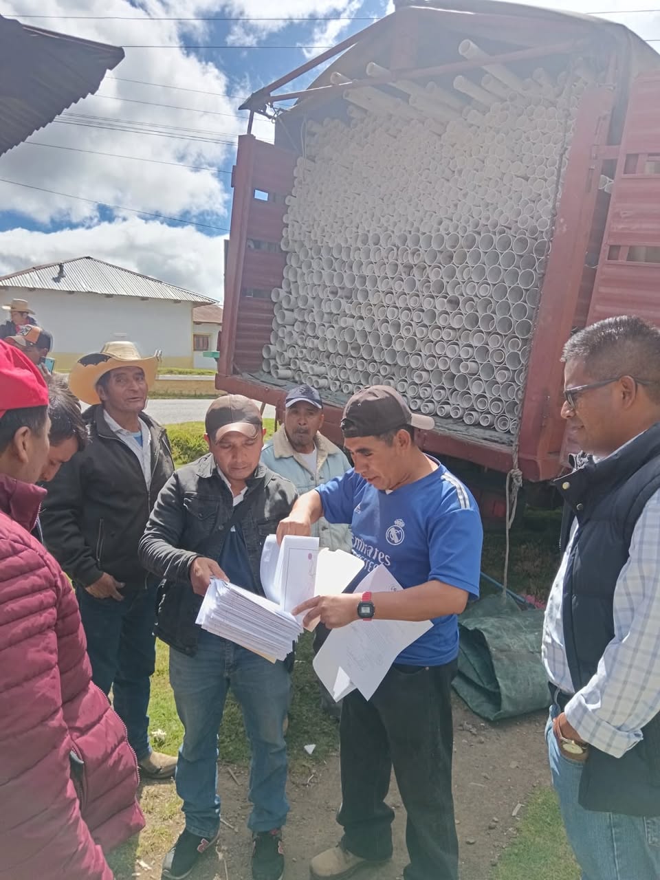 El proyecto de construcción del sistema de agua potable en la aldea Tres Cruces, Sipacapa, San Marcos, avanza con la segunda entrega de tubería PVC, un paso crucial para el desarrollo de un sistema de bombeo eficiente.