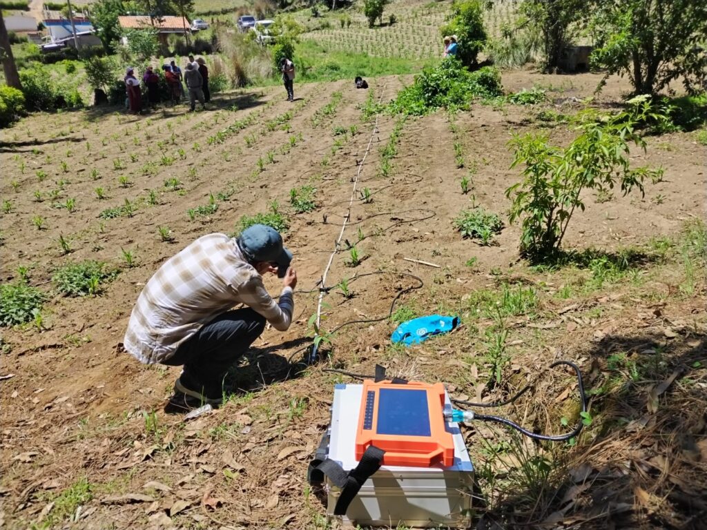 Durante la visita se revisaron aspectos clave para la ejecución del proyecto, incluyendo la adquisición de materiales —a cargo de la municipalidad—, la evaluación de accesos para el ingreso de maquinaria, y la verificación de los puntos de perforación a partir del sondeo geofísico previamente realizado.